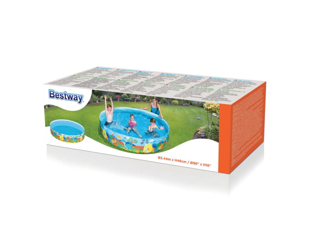 Tento bazén je robustní a odolný a je tvořený pevnou a výjimečně odolnou PVC boční stěnou, která je trvale připojená k pevné a solidní vinylové podlaze. Bazén pojme až 2 074 litrů vody.