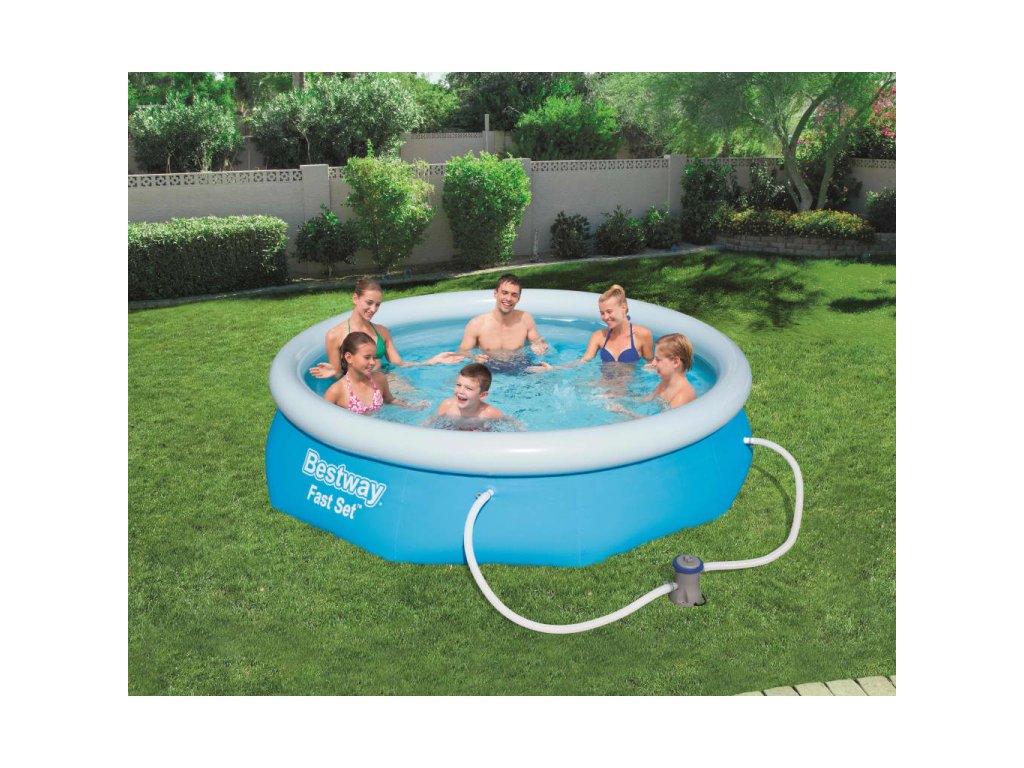 Bazénový set Bestway Fast Set 57270 s nafukovacím okrajem bazénu nabízí velmi šikovné řešení pro letní koupání na zahradě.