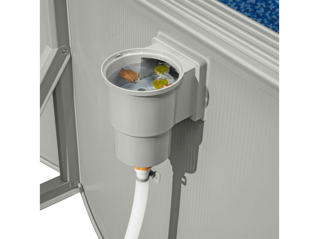 - Praktický nástroj: Integrovaný hladinový skimmer pracuje společně s elektrickým filtračním čerpadlem a pomáhá odstraňovat nežádoucí nečistoty a udržovat bazénovou vodu čistou. Dávkovač ChemConnect zajišťuje poskytuje stabilní hladinu chlóru v celém bazénu.