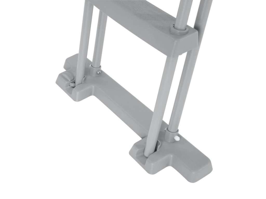 Rám bazénových schůdků je vyrobený z pevné oceli a má maximální nosnost 150 kg. Čtyři protiskluzové stupínky na každé straně jsou vyrobené z vysoce odolné umělé hmoty. Schůdky na jedné straně žebříku lze upravit jako zábranu, která malý dětem znemožní dostat se po schůdkách do bazénu.
