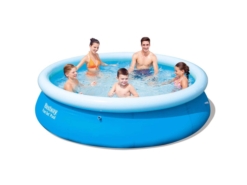 Vychutnejte si zábavu ve svém dvorku s rodinou a přáteli v tomto nafukovacím bazénu Bestway Fast Set 57266.