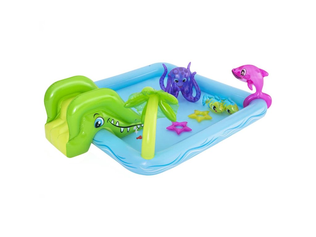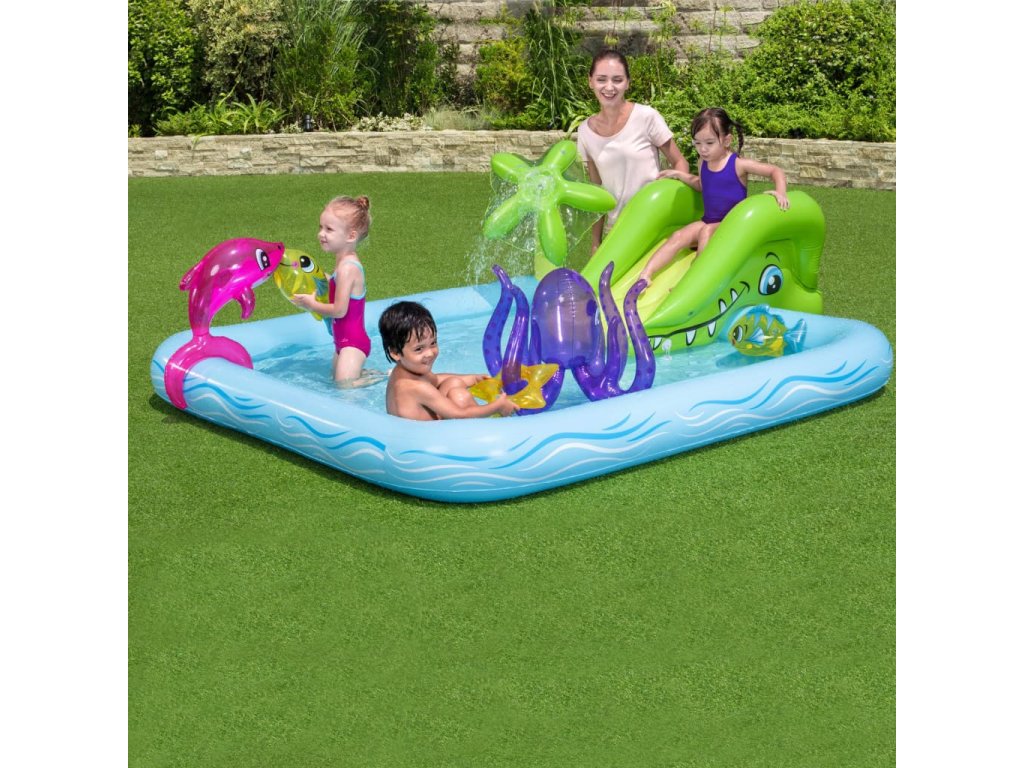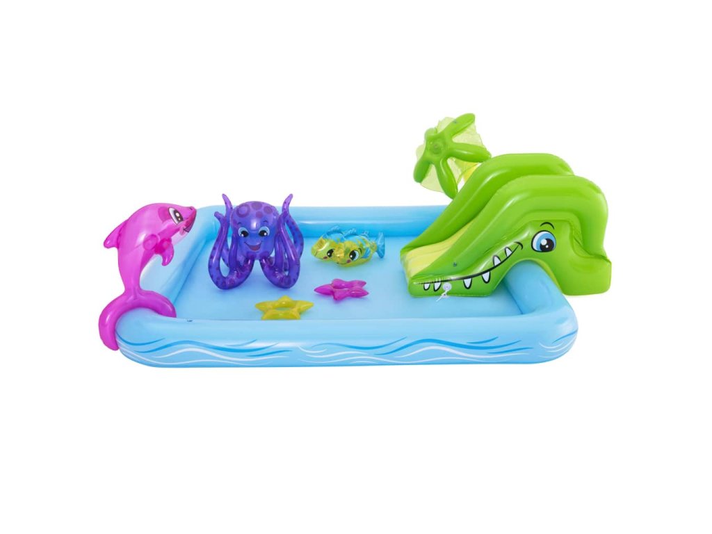 Toto fantastické hrací centrum Bestway je vodní říše divů pro děti! Děti si užijí zábavné plavání s delfínem, klaunem očkatým a chobotnicí.