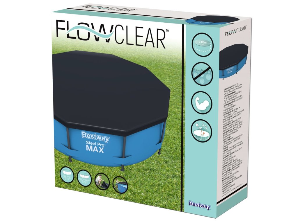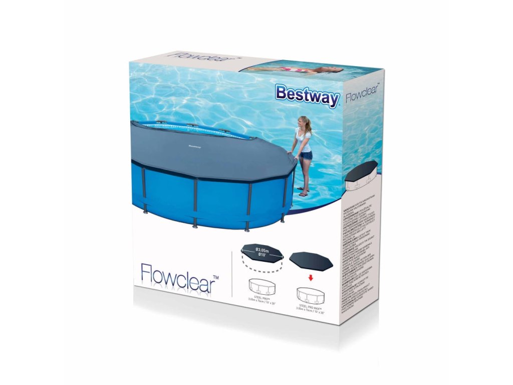 Kryt na bazén Bestway Flowclear zabrání nečistotám, listí a odpadkům, aby se dostaly do vašeho bazénu. Předchází také růstu řas a snižuje spotřebu nákladných chemikálií, pokud bazén zrovna nepoužíváte.