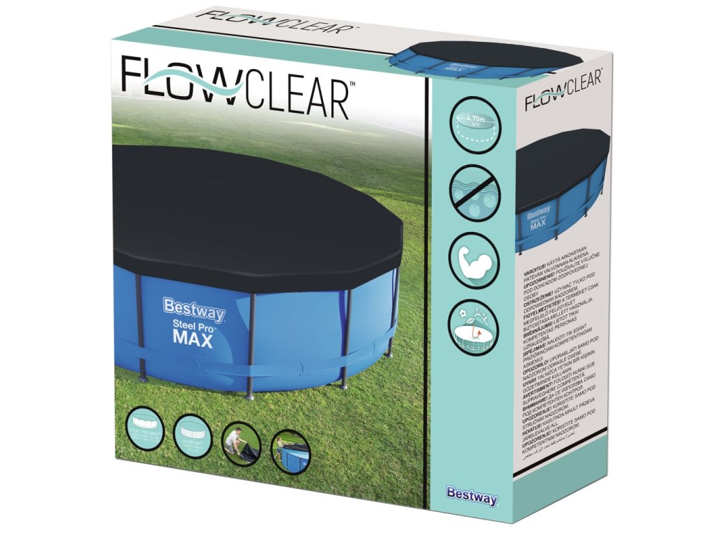 Kryt na bazén Bestway Flowclear zabrání nečistotám, listí a odpadkům, aby se dostaly do vašeho bazénu. Předchází také růstu řas a snižuje spotřebu nákladných chemikálií, pokud bazén zrovna nepoužíváte.