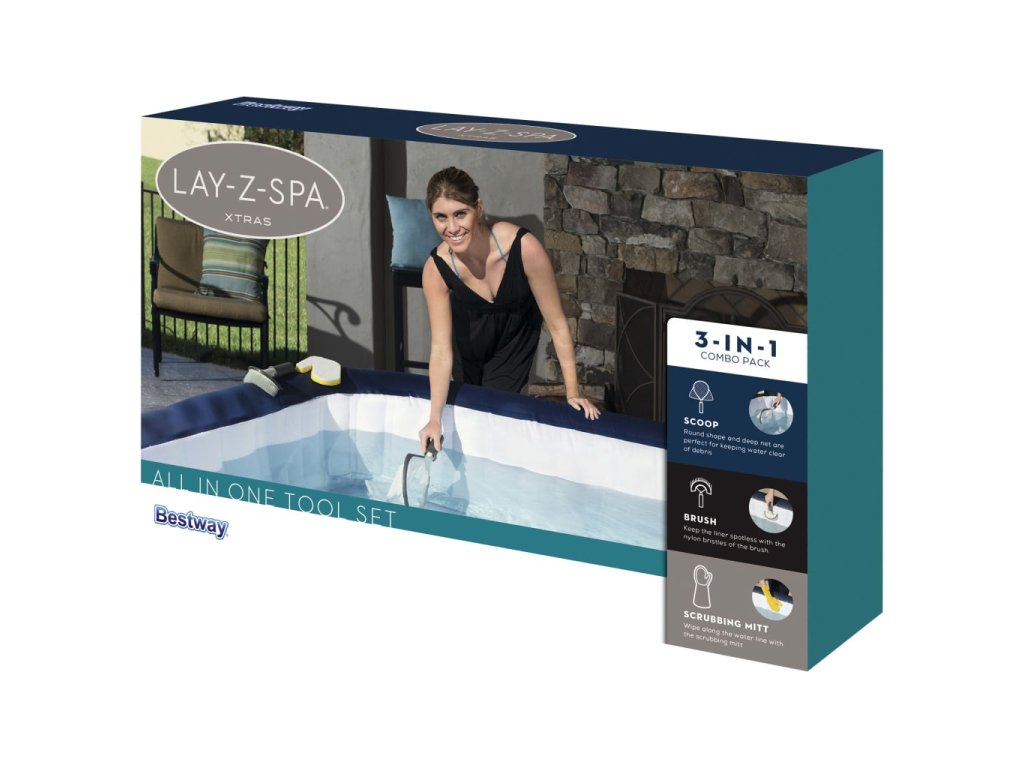 Sada nástrojů vše-v-jednom Bestway Lay-Z-Spa je perfektní čistící příslušenství, se který snadno udržíte svou vířivku zářivě čistou!