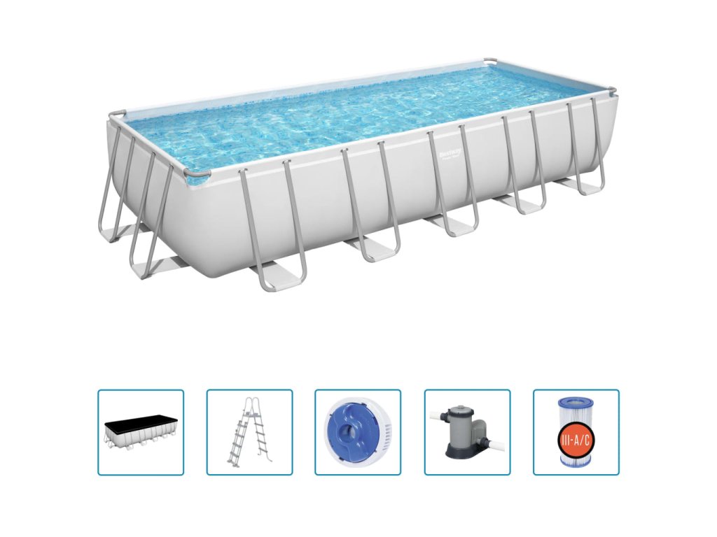 S tímto nadzemním bazénem Power Steel Bestway si s rodinou a přáteli užijete spoustu zábavy. Obdélníkový tvar poskytuje více prostoru na plavání a hraní.