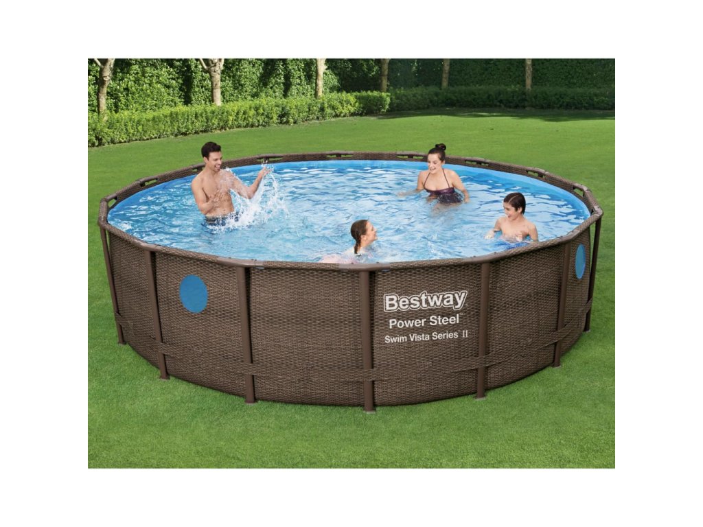 S bazénem Bestway Power Steel, jehož kulatý tvar poskytuje větší plochu pro plavání a hry, si užijete spoustu zábavy s rodinou či přáteli. Tento nadzemní bazén v sobě snoubí odolnost a styl a jeho potisk s imitací ratanu dodá vaší zahradě či dvorku nádech luxusu.