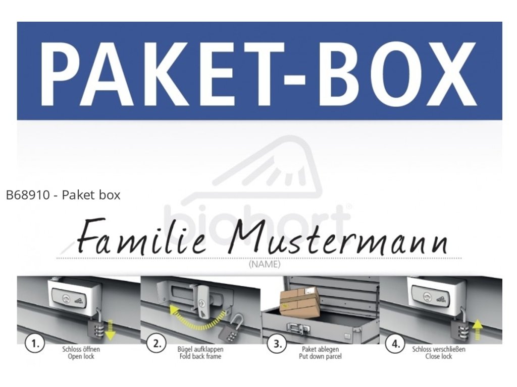 Každá zásilka je bezpečně dodávána - nepřetržitě!Nejste doma během dne, ale chcete obdržet balíčky? Umístěte PAKET-BOX před své bytové nebo uliční dveře a zbytek se provede boxem. Všechny balíkové služby jsou schopny vložit balíky, bezpečně uzamknout krabici a také déšť nemůže poškodit zboží v krabici.