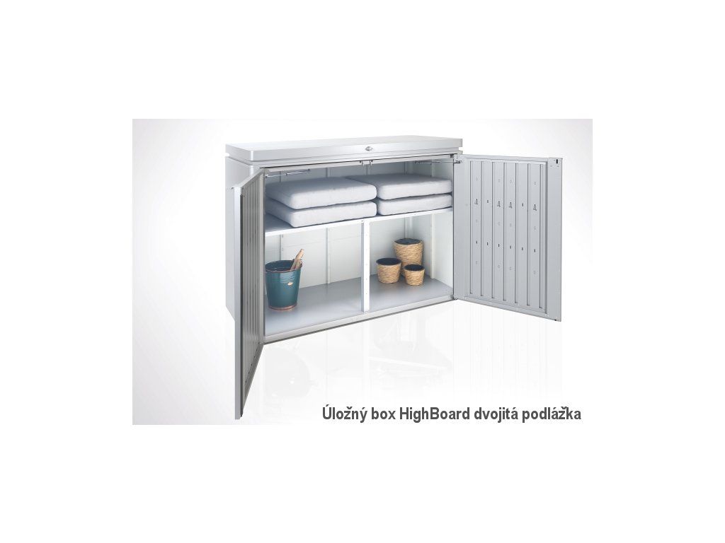 Přednosti úložných boxů Biohort: Možnosti využití HighBoard jsou díky předním dveřím a hornímu víku mnohostranné: ať již jako ukládací prostor pro polštáře a zahradní nářadí nebo jako ideální doplněk Vaší venkovní kuchyně. Je voděodolný.