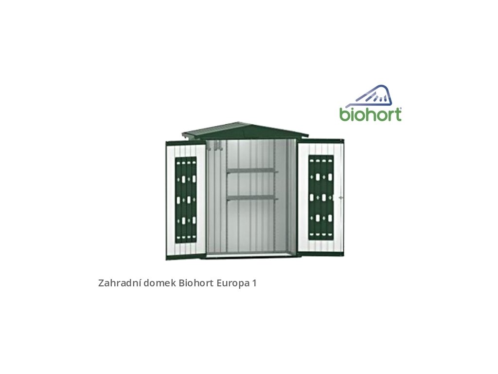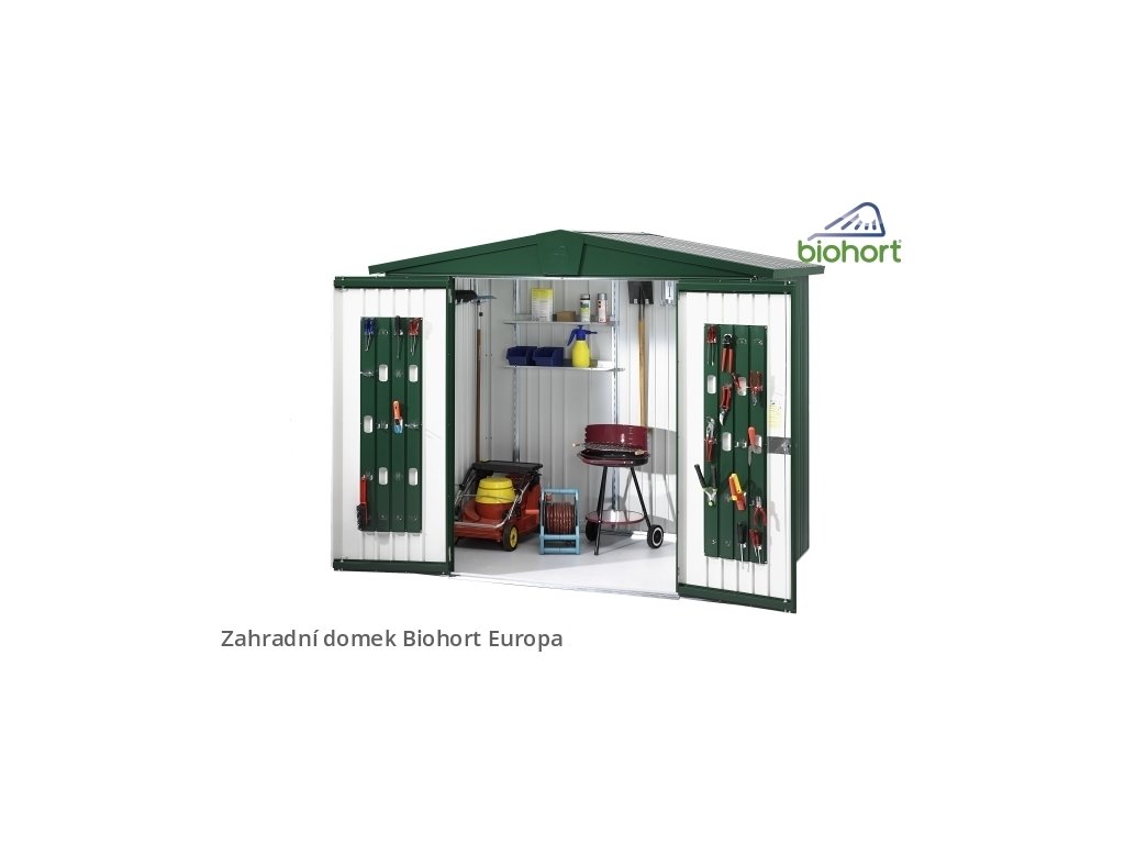 Přednosti zahradních domků Biohort:Domek na nářadí EUROPA splňuje nejvyšší nároky na bezpečnost - cylindrická vložka s otočnou rukojetí včetně rezervního klíče. Nejlepší materiály - žárově pozinkovaný ocelový plech opatřený polyamidovým vypalovacím lakem, šrouby a panty z ušlechtilé oceli. Je zajištěna vysoká stabilita při zatížení sněhem a proti větru.
