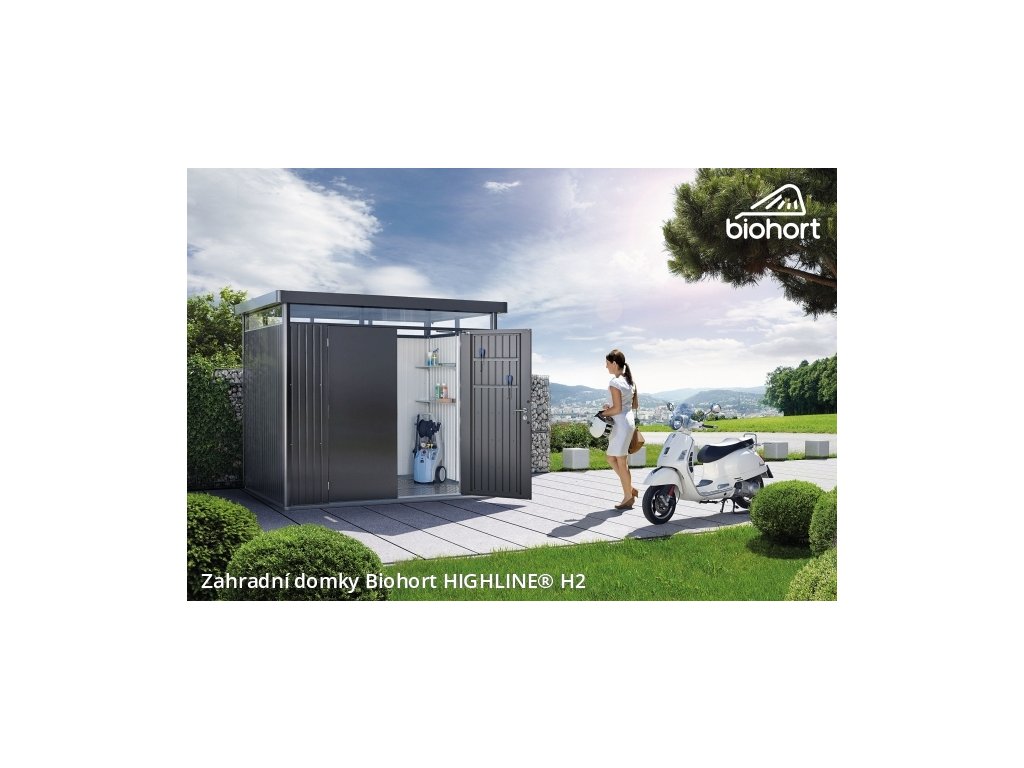 Zahradní domky na nářadí rakouského výrobce Biohort splňují nejvyšší nároky na design a bezpečnost. Plechové zahradní domky Biohort potvrzují svou kvalitu zárukou 20 let.UPOZORNĚNÍ: u zahradních domků HighLine je střecha vždy v barvě šedý křemen metalíza.Technická specifikace: S dvoukřídlými dveřmi (dveřní otvor: 155 x 182 cm)