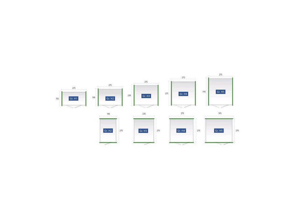 Vnější rozměry vč. převislé střechy š x h x v (cm): 275 x 195 x 222 (v nejvyšším místě)
