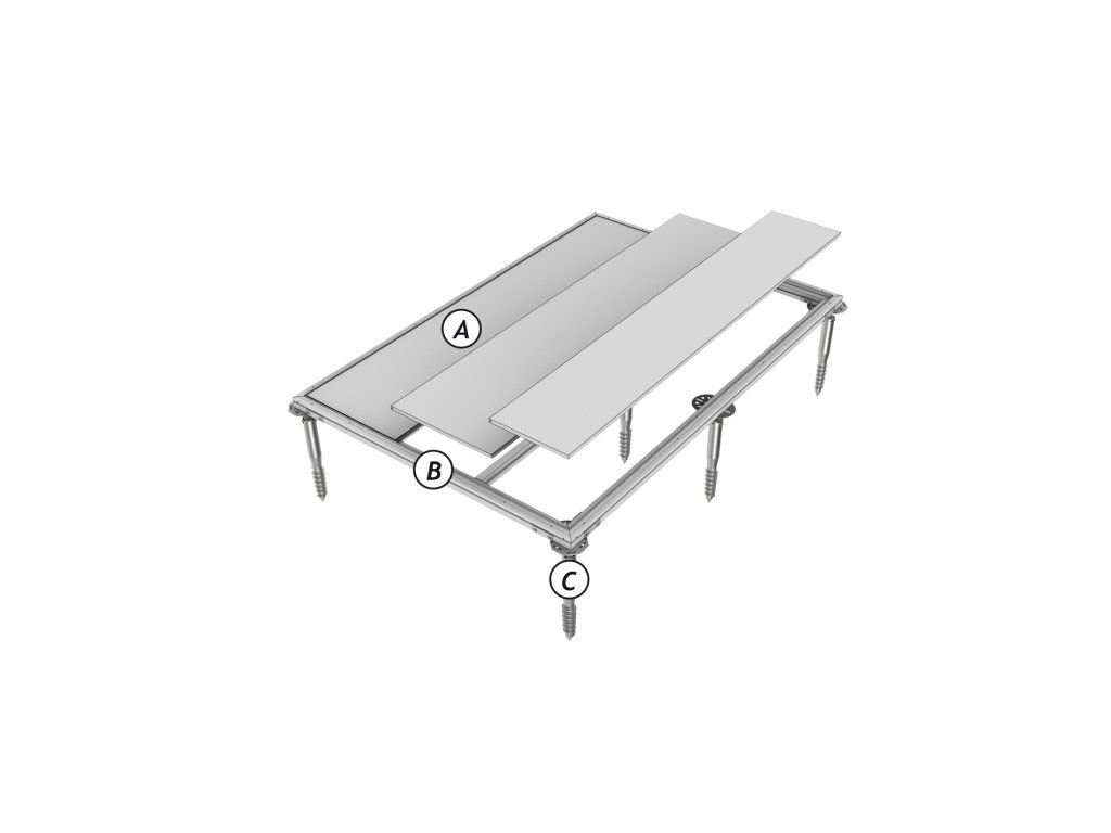 Základ tvoří: sítotiskové desky (multiplexní desky) odolné proti povětrnostním vlivům, speciálně koncipovaný základový rám z hliníku a zemní vruty pro nejvyšší bezpečnost při bouři a stabilitu.