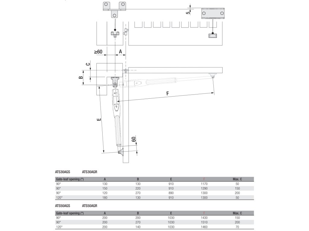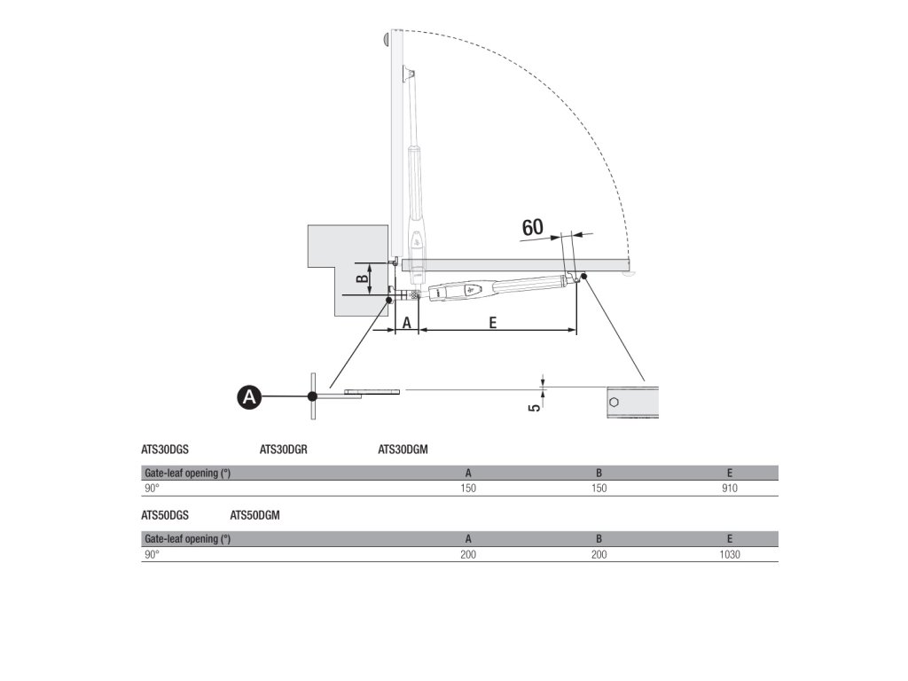 Možnost kotvit pohon na široký sloupek, vzdálenost osy pantu křídla brány může být až 200mm.