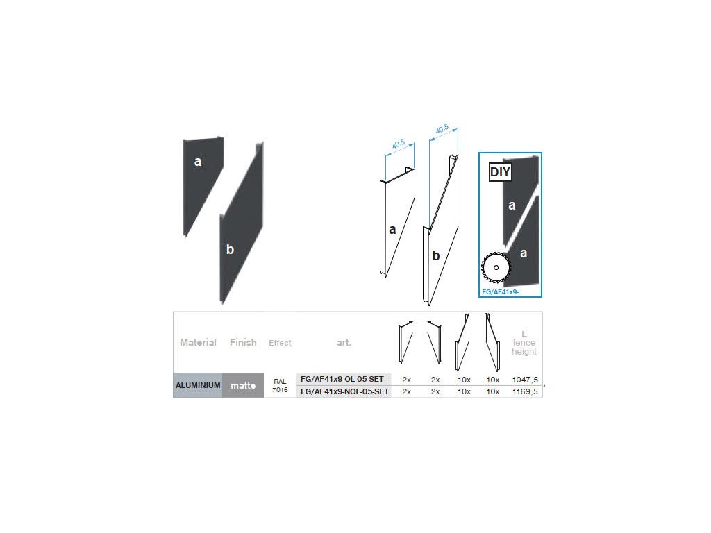 Kompletní set šikmých distančních krycích lišt pro systém MOUNT L2. S tímto setem vyskládáte plotové pole s výškou maximálně 1047,5 mm. Lamely jsou osazené s 5 mm překrytím, díky čemuž je plotové pole neprůhledné.