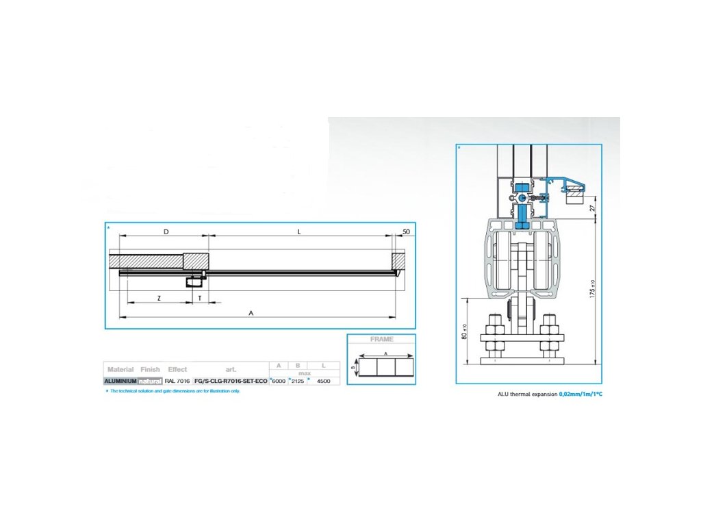 Hliníková samonosná posuvná brána ECO 6x2,125m s výplní 20x100 - set antracit