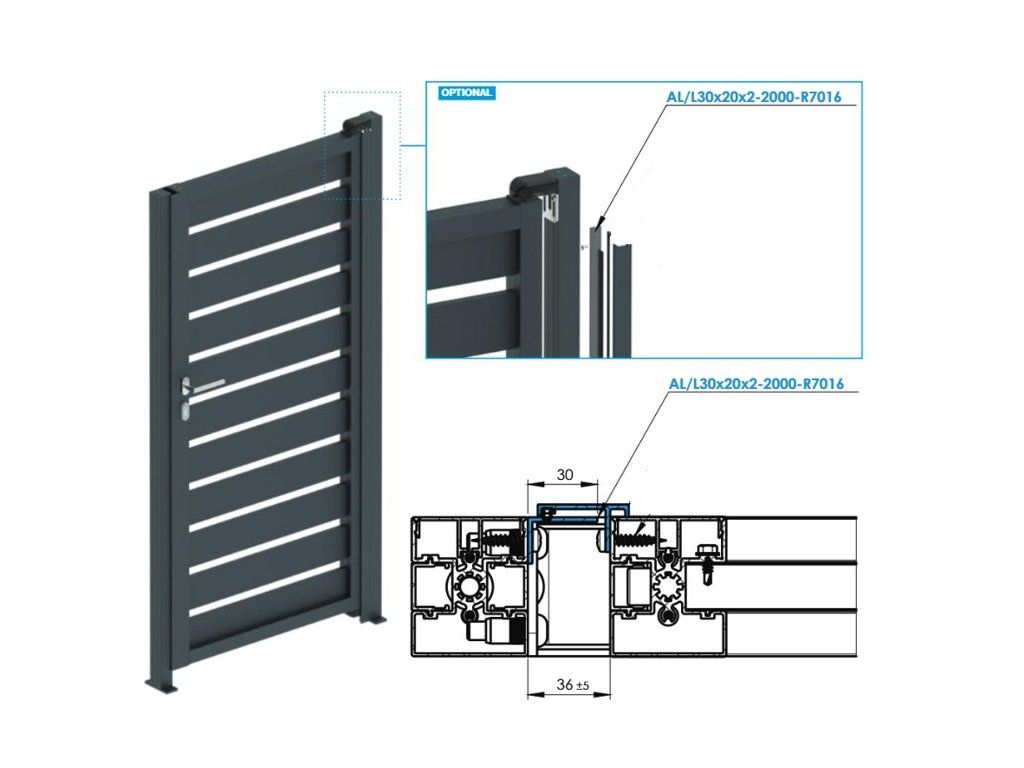 Hliníkový dorazový profil brány L30x20x2 - 2000mm antracit