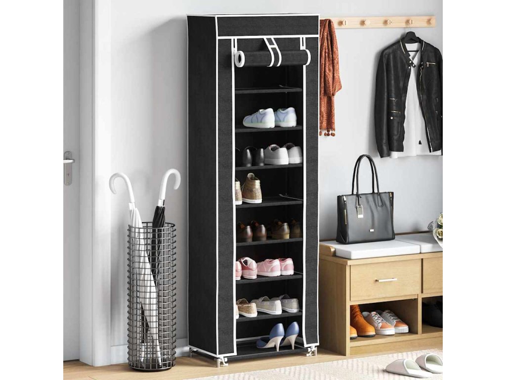 Látkový botník s dvířky - 57 x 29 x 162 cm - černý