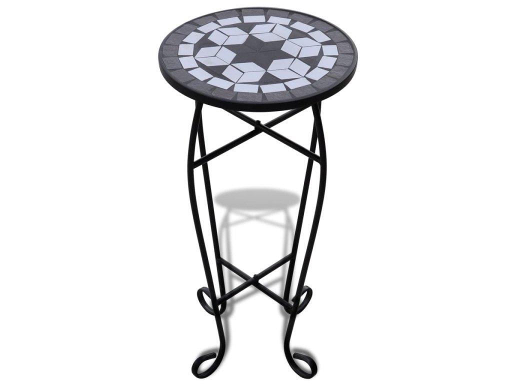Tento květinový stolek má elegantní zakřivené nohy a mozaikovou desku, která je odolná vůči povětrnostním vlivům. Zajisté se stane středem pozornosti vaší zahrady, balkonu, terasy atd.