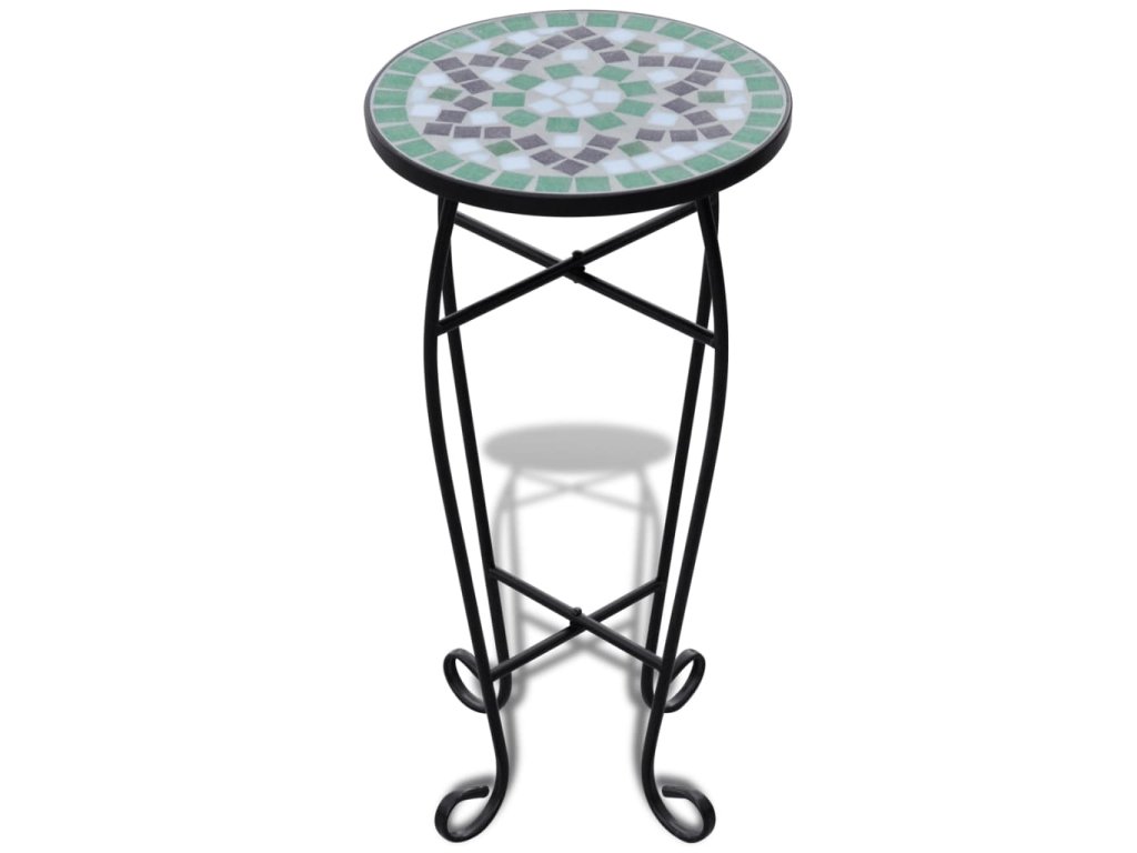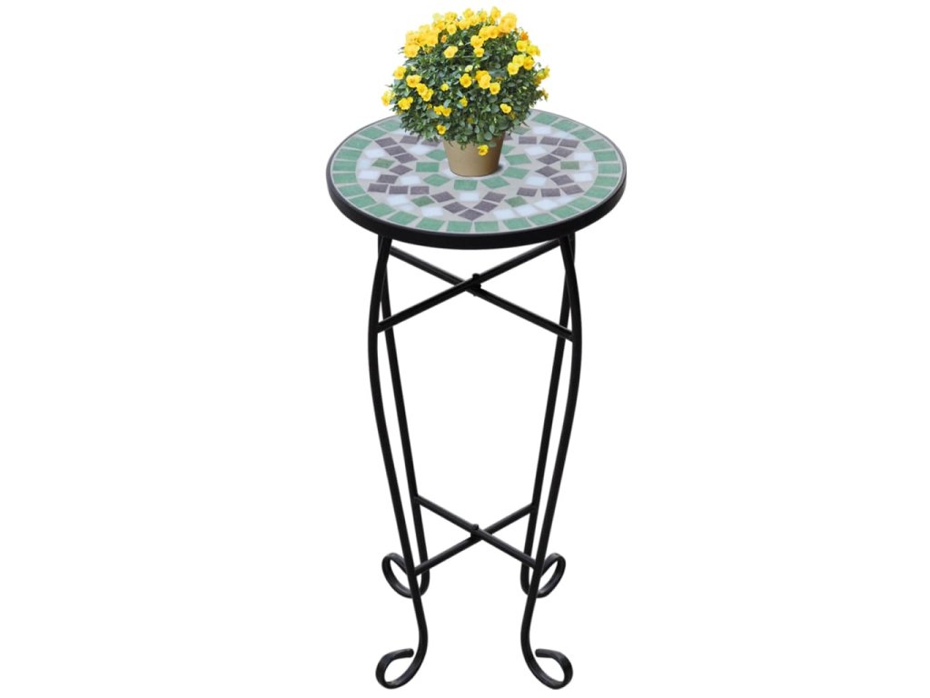 Tento květinový stolek má elegantní zakřivené nohy a mozaikovou desku, která je odolná vůči povětrnostním vlivům. Zajisté se stane středem pozornosti vaší zahrady, balkonu, terasy atd.