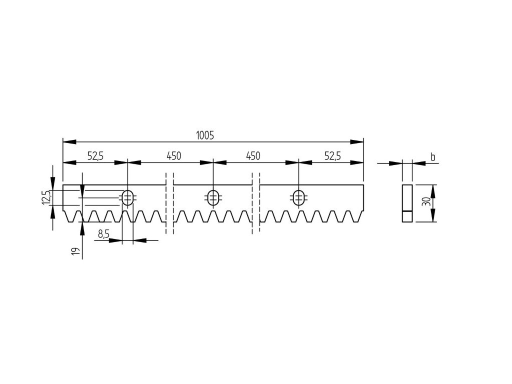 Ozubený hřeben Zn, 30x8mm, L1m, max 1200kg
