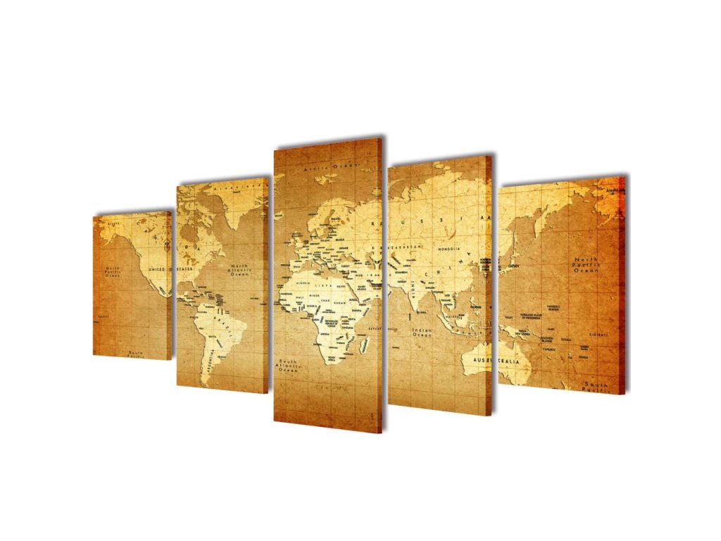 Sada obrazů, tisk na plátně, motiv mapa světa, 100 x 50 cm