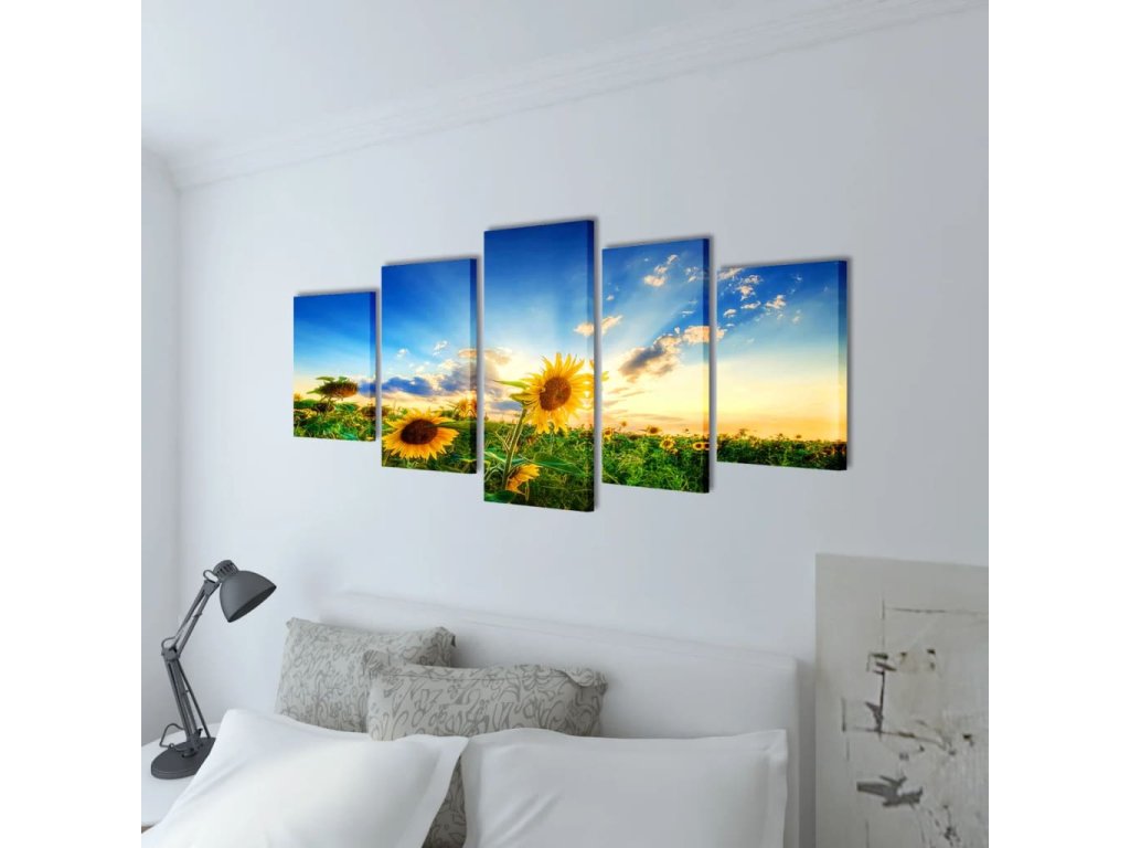 Sada obrazů, tisk na plátně, slunečnice, 200 x 100 cm