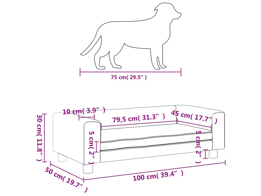- Rozměry pelíšku por psy: 100 x 50 x 30 cm (Š x H x V)