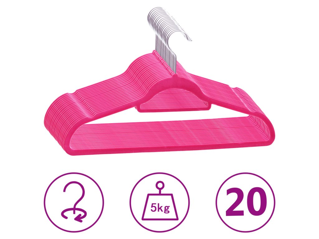 vidaXL 20 ks šatních ramínek protiskluzové růžové samet