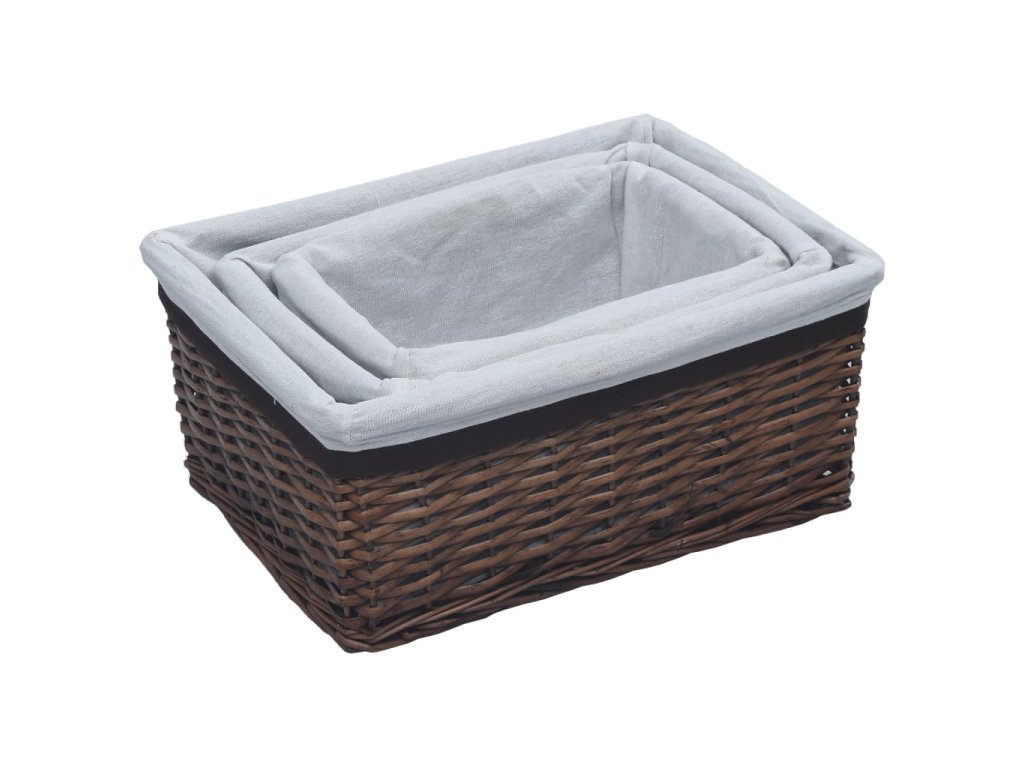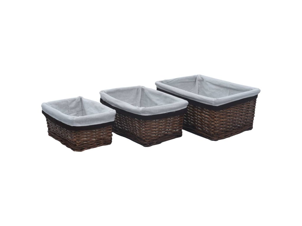 Úložné koše jsou vyrobené z vrbového proutí, jsou tedy robustní a odolné. Obdélníkové boxy jsou perfektní pro všestranné každodenní organizování a největší koš s víkem vám poslouží třeba jako prostorný koš na prádlo. Atraktivní proutěný styl dodává této sadě přírodní kouzlo.