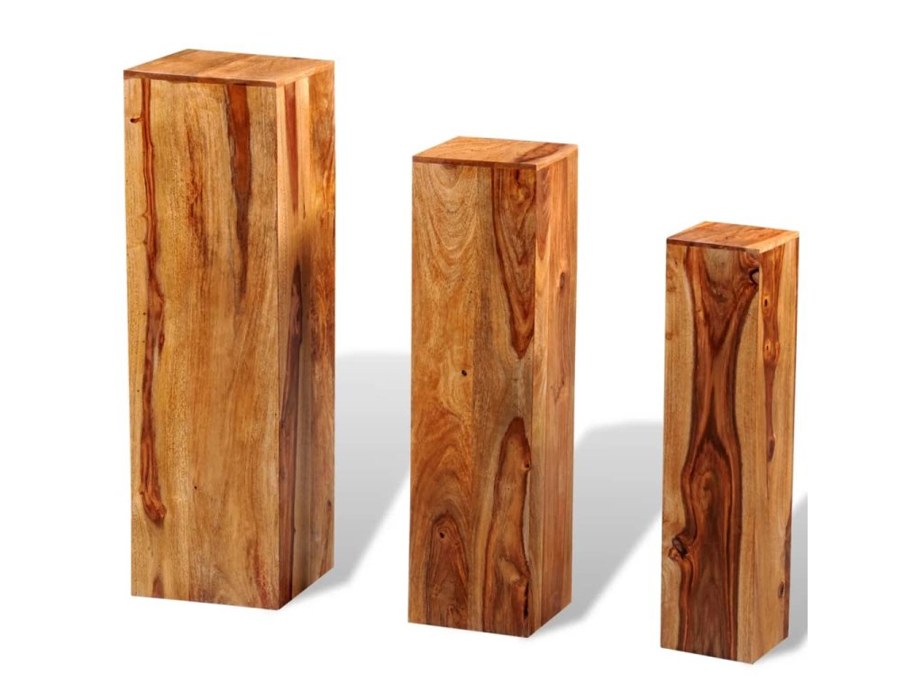 vidaXL 3dílný stojan na květiny masivní sheesham hnědý