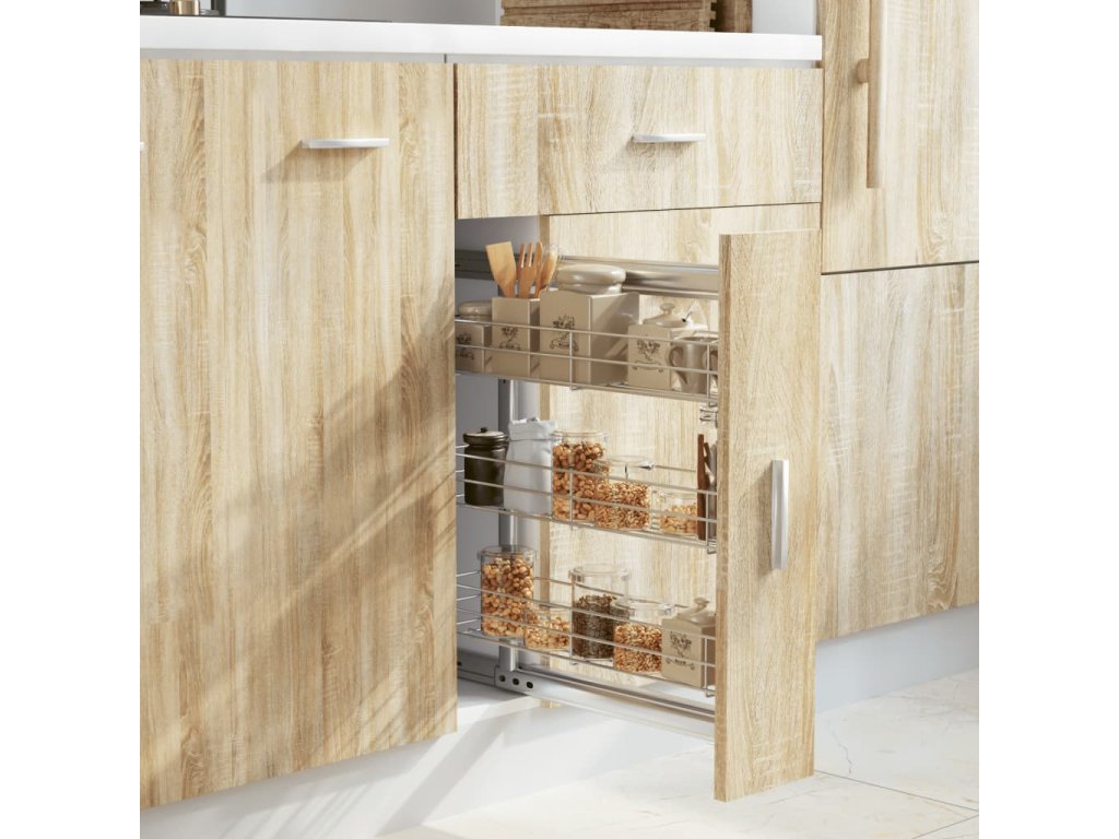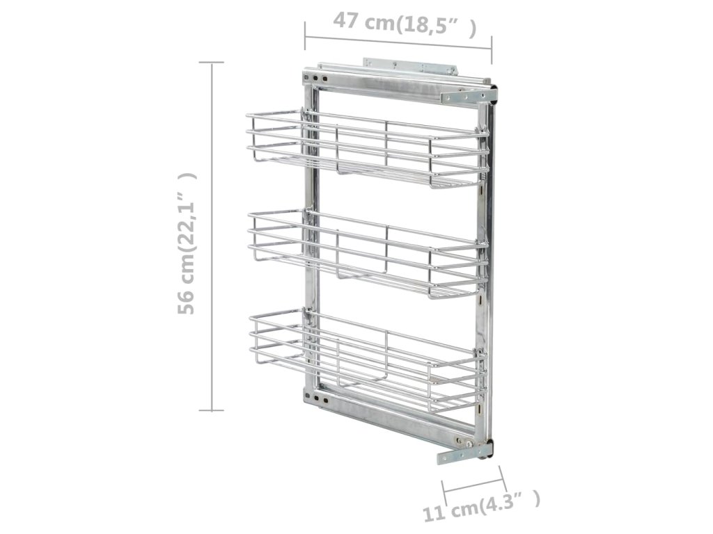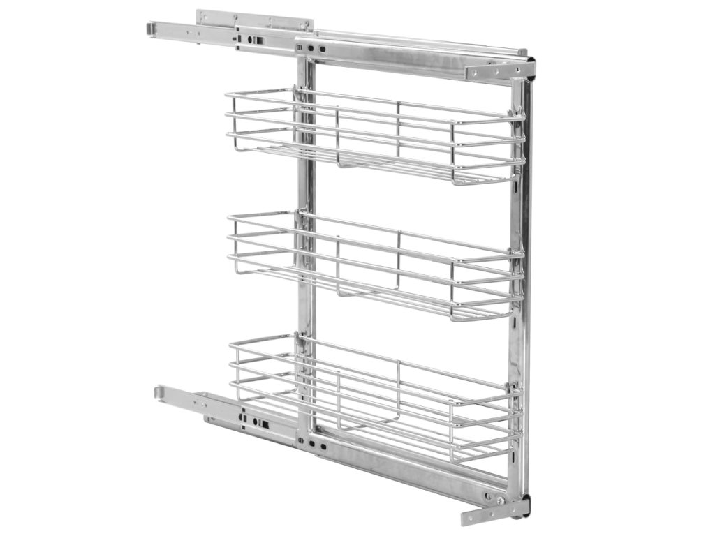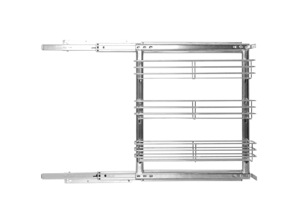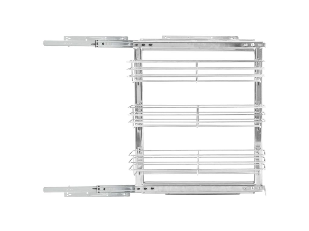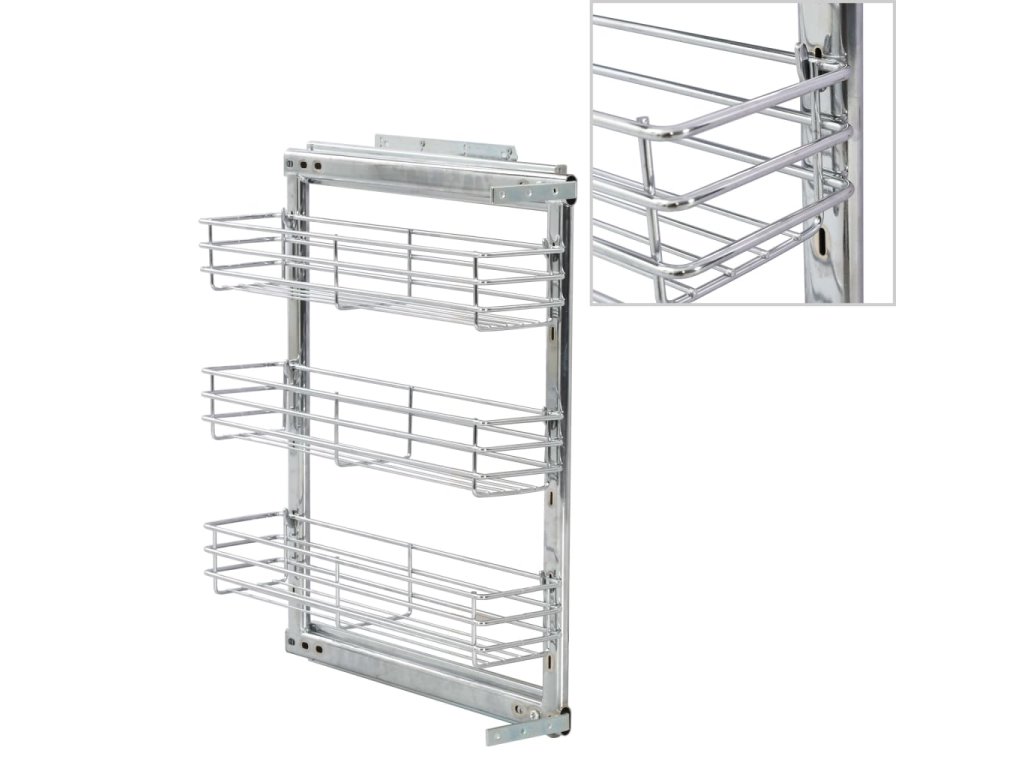 Náš výsuvný drátěný koš bez námahy nainstalujete do své stávající kuchyňské skříňky za pomoci přiloženého montážního příslušenství. Disponuje 3 poličkami, a představuje proto jednoduché a praktické řešení, jak ve skříni optimalizovat úložný prostor.