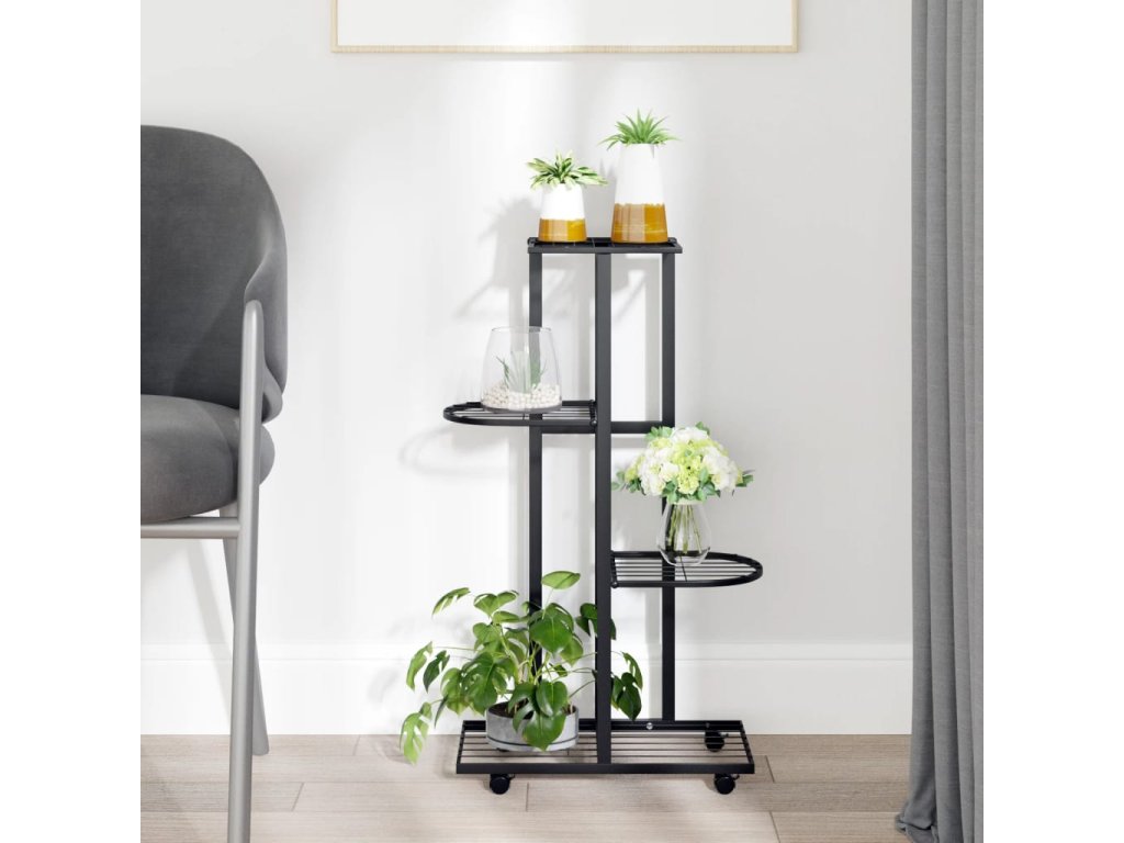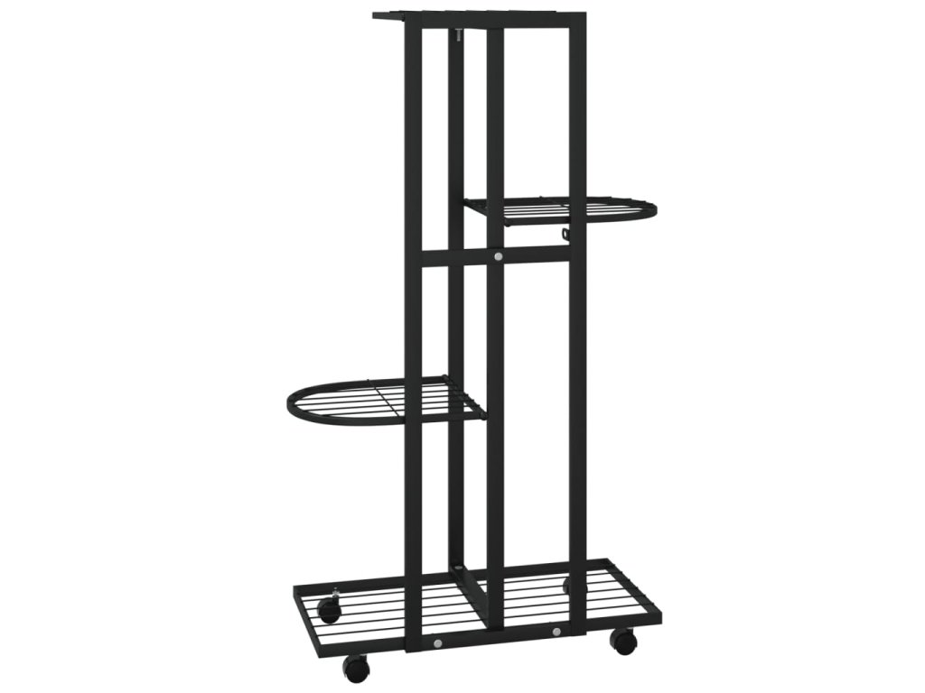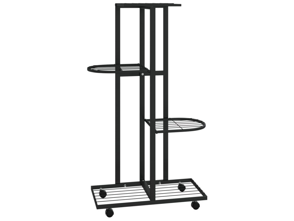 vidaXL 4patrový stojan na květiny s kolečky 44x23x80 cm černý železo