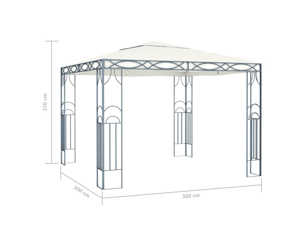 Střecha vyrobená ze 100% polyesteru s PA nátěrem vás chrání před oslněním a škodlivými UV paprsky přímého slunečního záření. Altán je robustně vyroben z pevné oceli, a proto je odolný vůči korozi a velmi stabilní. Součástí balení jsou také suché zipy pro snadné upevnění.