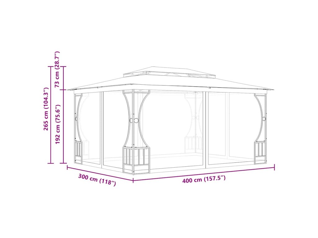 - Rozměry: 300 x 400 x 265 cm (D x Š x V)