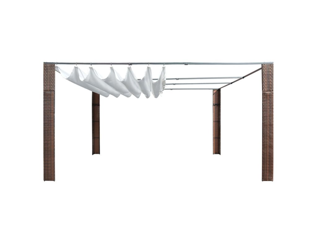 Altán z polyratanu se snadno čistí, je odolný vůči opotřebení a ideální pro každodenní použití na zahradě. Rám z oceli s práškovým nástřikem je pevný a stabilní. Posuvná stříška vás ochrání nejen před sluncem, ale i před deštěm. Nemusíte se tedy bát, že by vám nepříznivé počasí překazilo rodinné sešlosti, grilovačky, pikniky nebo narozeninové oslavy.