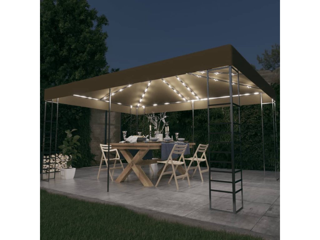 vidaXL Altán se světelnými LED řetězy 3 x 4 m taupe