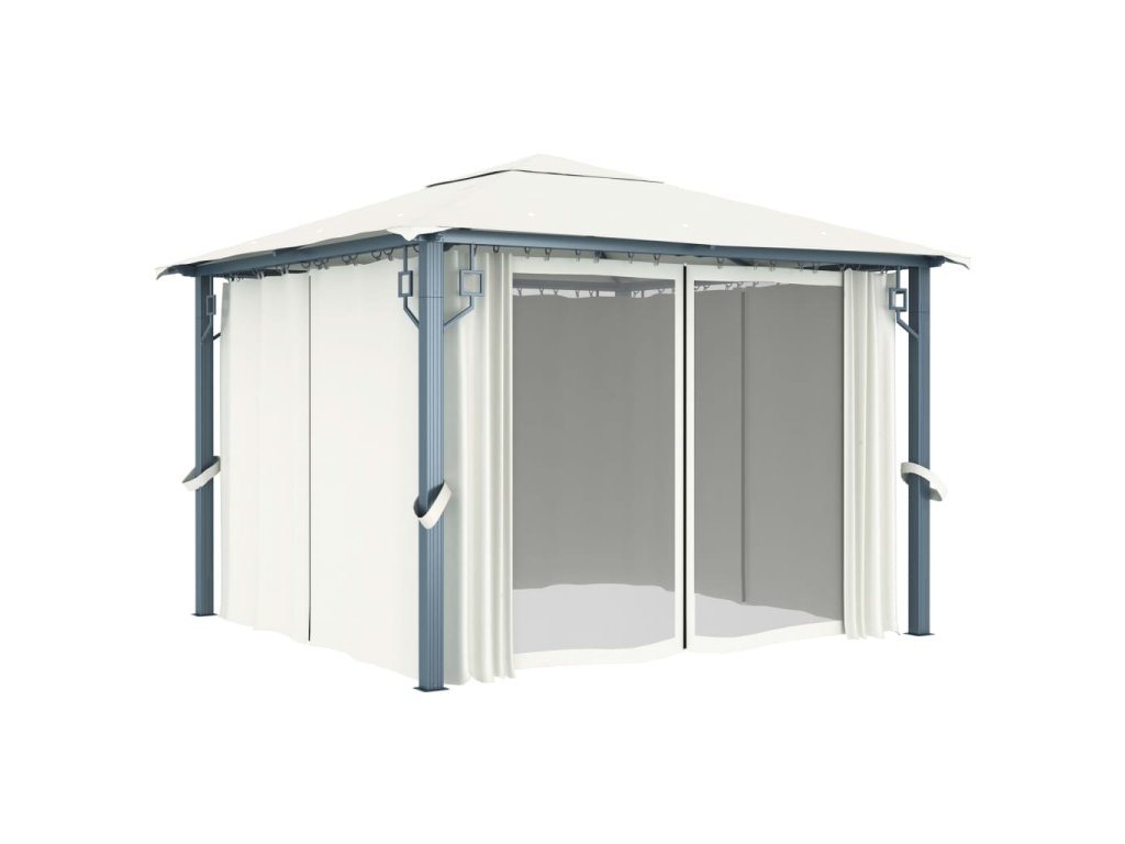 vidaXL Altán se závěsy 300 x 300 cm krémový hliník