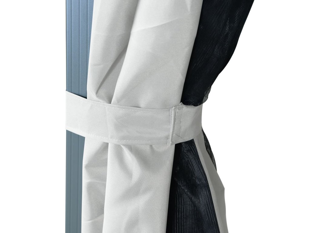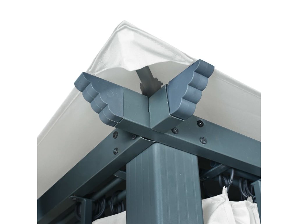 Střecha vyrobená z oxfordské látky s PA nátěrem vás chrání před oslněním a škodlivými UV paprsky přímého slunečního záření. Altán je robustně vyroben z pevného hliníku a oceli, a proto je odolný vůči korozi a velmi stabilní. Pavilon se dodává se 4 bočními stěnami, které lze za nepříznivého počasí zatáhnout. Součástí balení jsou také síťované sítě, které zabraňují vniknutí hmyzu a zároveň zajišťují dobrou cirkulaci vzduchu. Součástí balení jsou také suché zipy pro snadné upevnění.
