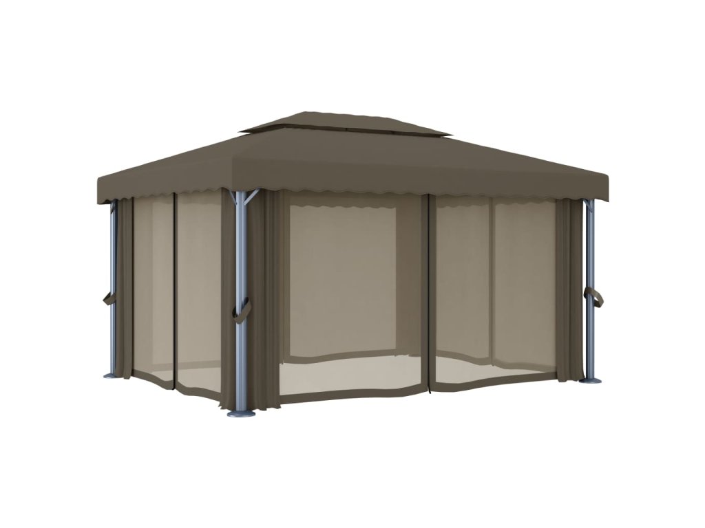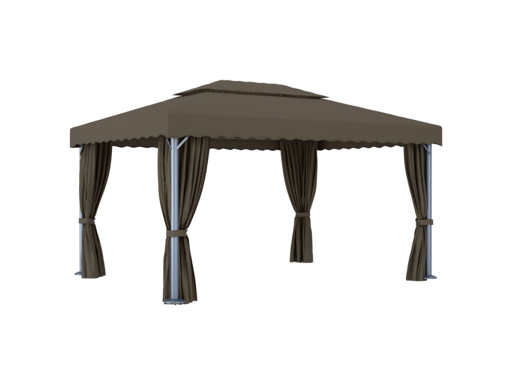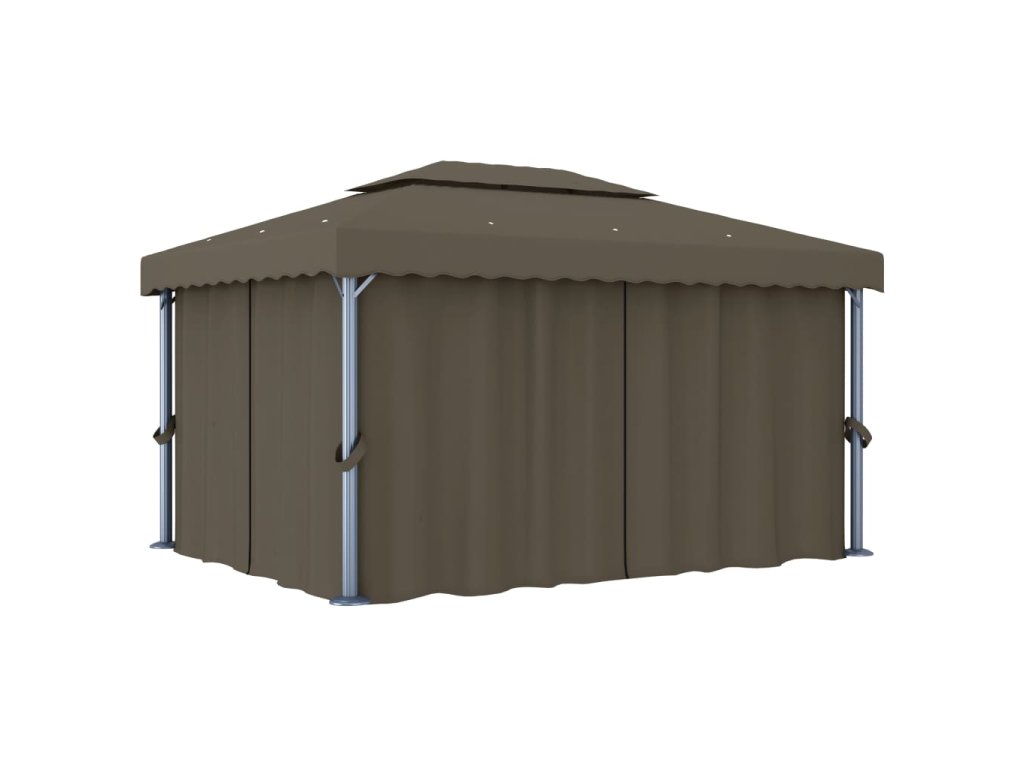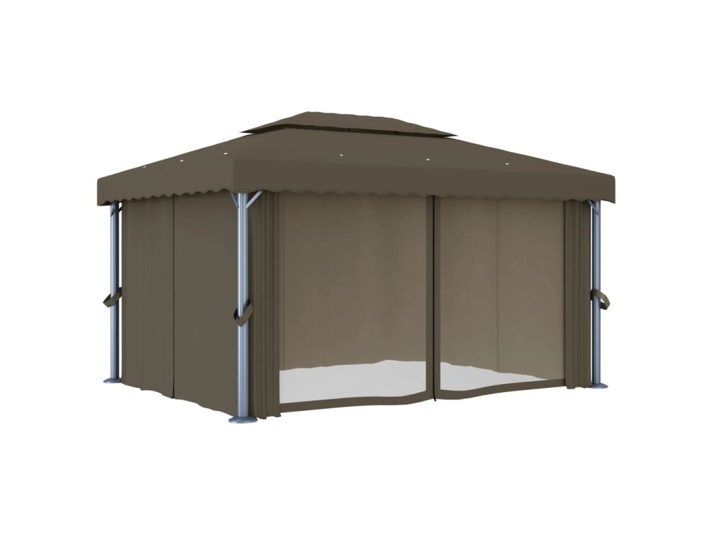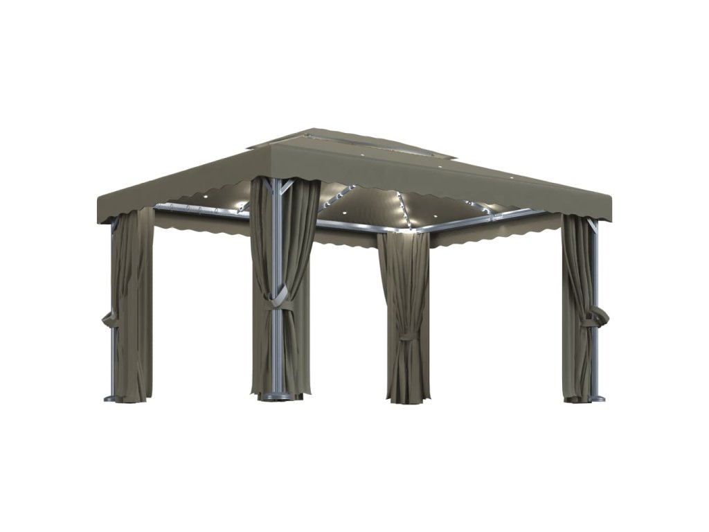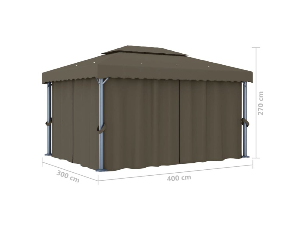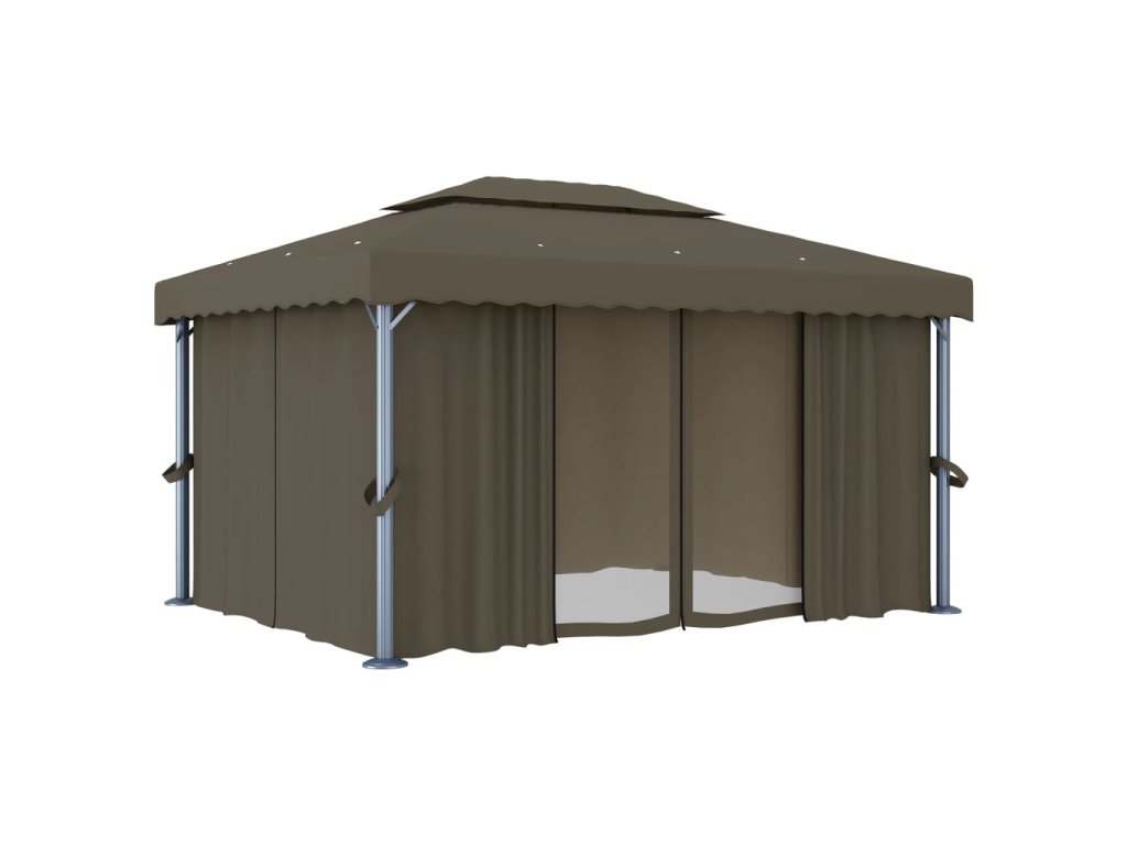 vidaXL Altán se závěsy a světelnými LED řetězy 4 x 3 m taupe