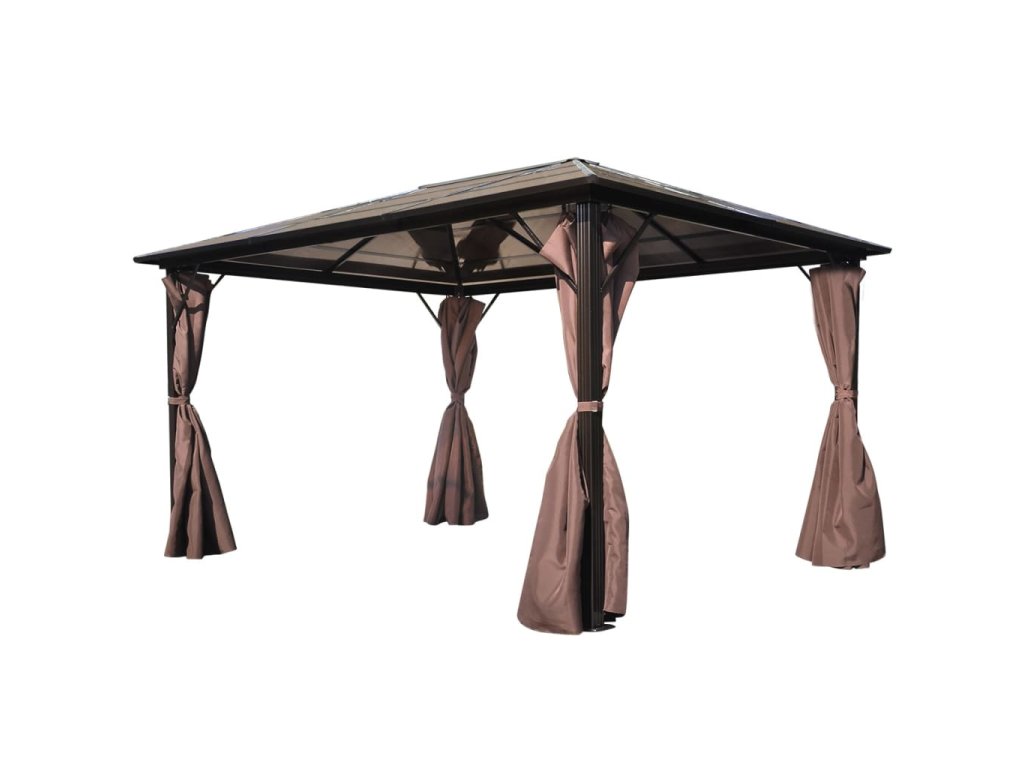 vidaXL Altán se závěsy hliníkový 400 x 300 cm hnědý