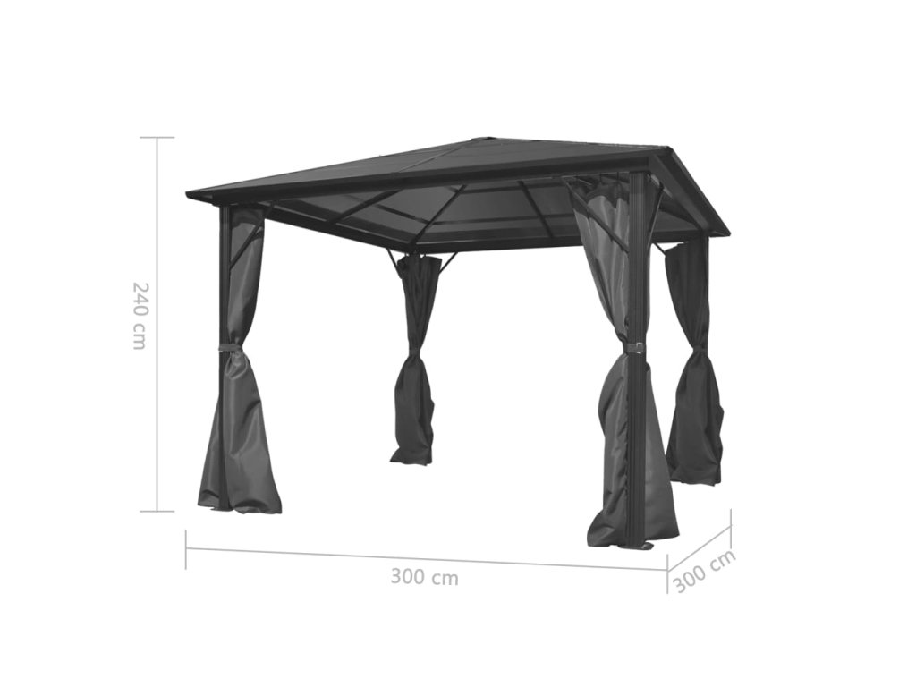 vidaXL Altán se závěsy hliníkový antracitový 300 x 300 cm