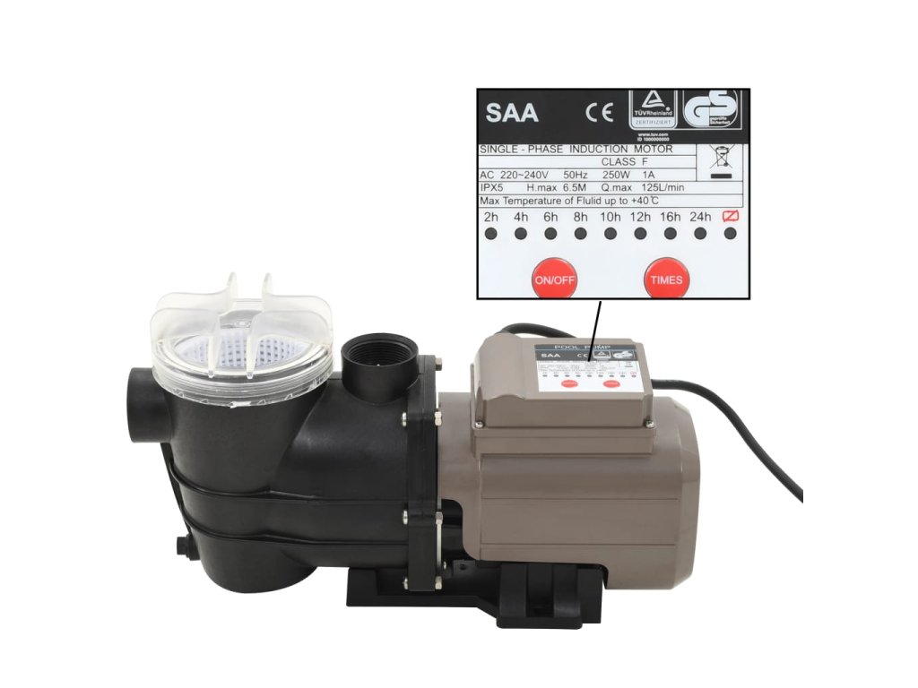 vidaXL Bazénové čerpadlo s časovačem černé 0,25 HP 8 000 l/h