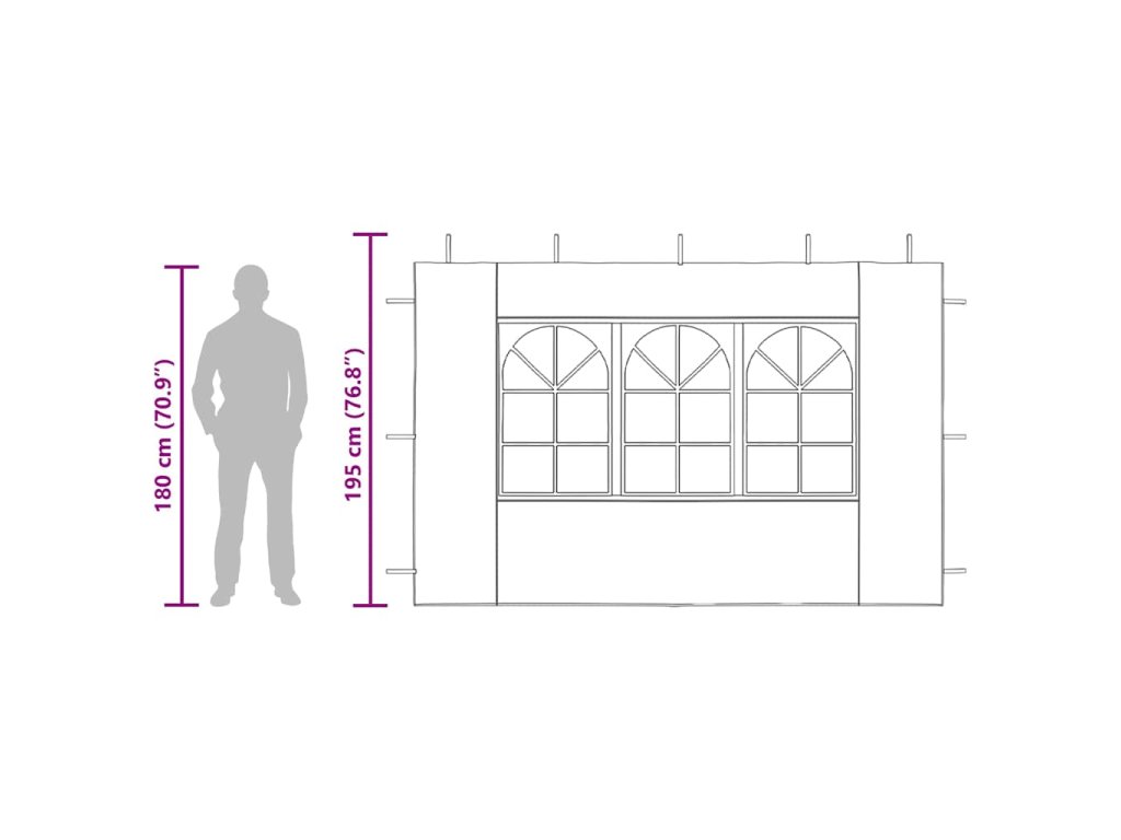 Stěna pro zahradní stany je vyrobena z polyetylenu odolného proti vodě a UV záření, takže se skvěle hodí pro celoroční venkovní použití. Suchý zip, který je její součástí, vám umožní boční stěny snadno připnout ke stanu tak, aby byly pevně zafixované. Balení obsahuje 2 kusy PE bočních stěn.