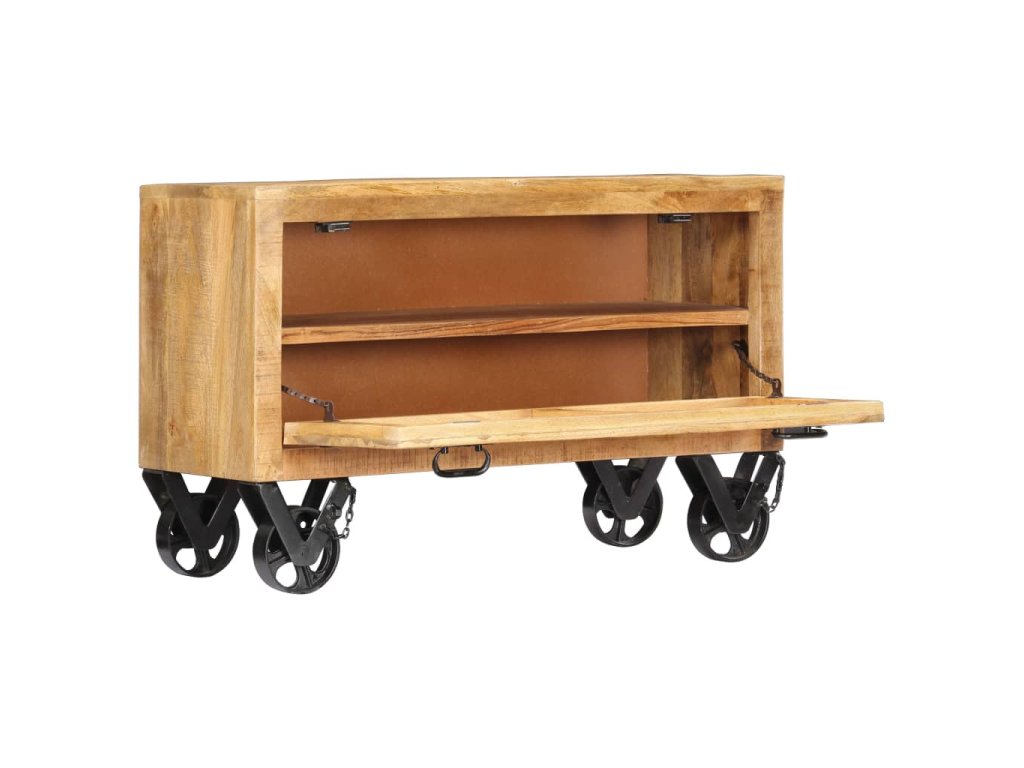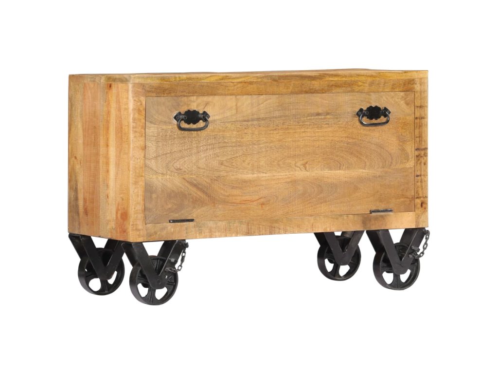 Botník je vyrobený z masivního mangovníku, což je tvrdé dřevo s hustou texturou. Hrubé mangovníkové dřevo je nejen schopné unést značnou váhu, ale zároveň také výborně odolává opotřebení a působení času. Řemeslné zpracování a elegantní kresba dřeva navíc činí každý kus nábytku zcela výjimečným a lehce odlišným od ostatních. Skříňka disponuje 2 přihrádkami ukrytými za dvířky, poskytne vám tedy spoustu místa, kam si můžete uložit své boty. K tomu je posazena na 4 kolečkách, takže ji lze snadno přesouvat z místa na místo.