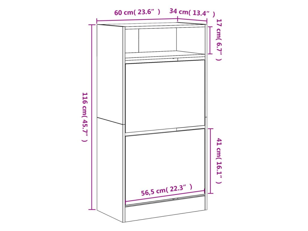 - Spousta úložného prostoru: Tento botník má 1 polici a 2 výklopné zásuvky, poskytuje tedy dostatek prostoru pro přehledné uspořádání bot, kde je budete mít vždy po ruce.