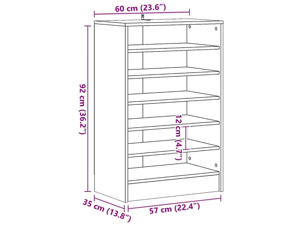 Botník je vyroben z kvalitního kompozitního dřeva, které mu dodává rafinovaný vzhled, stabilitu i odolnost. Je vybaven 7 policemi pro přehledné uložení bot a pantoflí. Tento organizér na boty se navíc snadno čistí vlhkým hadříkem.