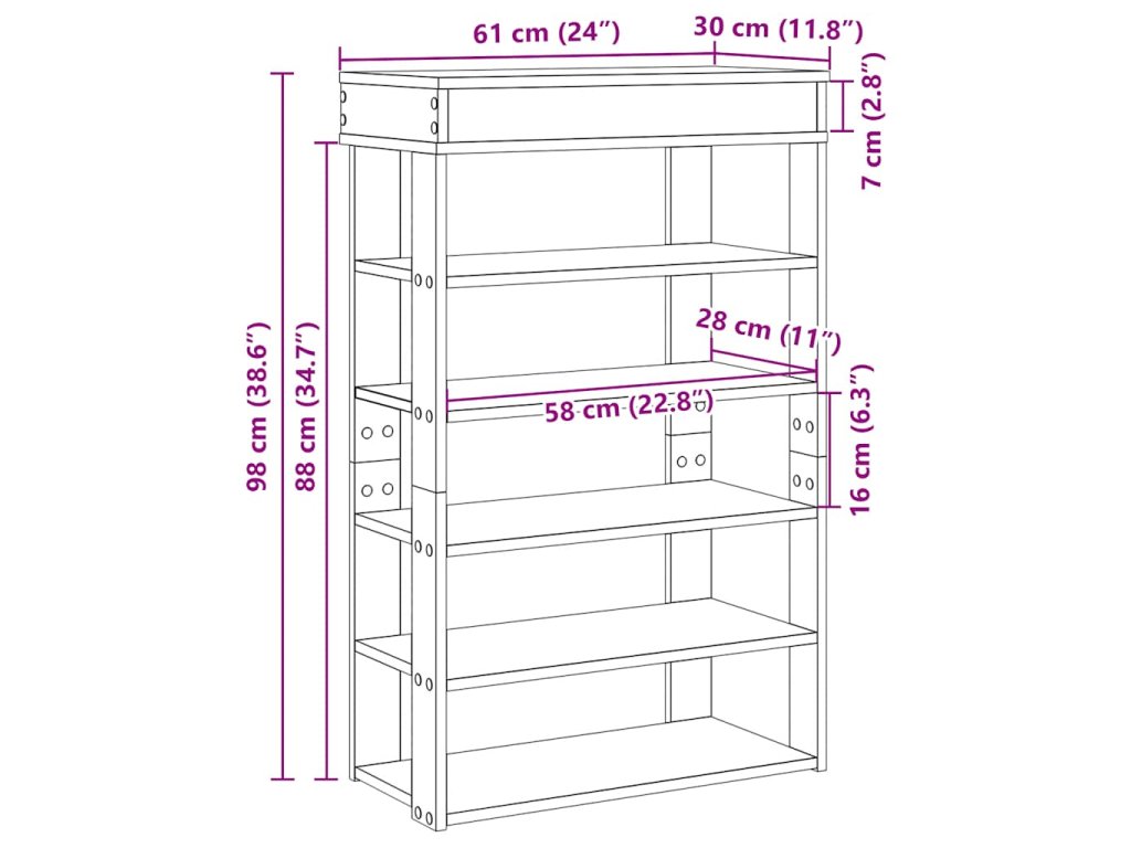 - Dostatek úložného prostoru: Regál na boty má police, které poskytují dostatek prostoru pro uložení obuvi. S tímto praktickým botníkem už se nebudete muset zlobit, že máte boty rozházené po celé chodbě.