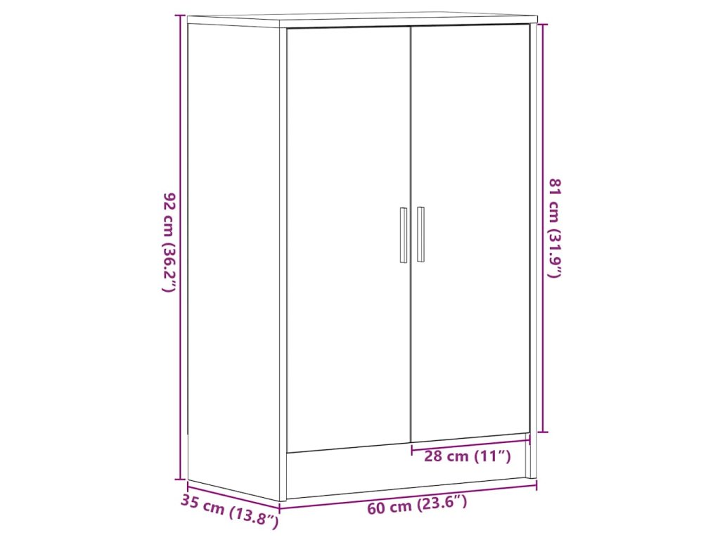 - Praktické dveře: Skříňka na boty je vybavena dvířky, která chrání boty před prachem a nečistotami a pomáhají udržovat čistý a uklizený vzhled.