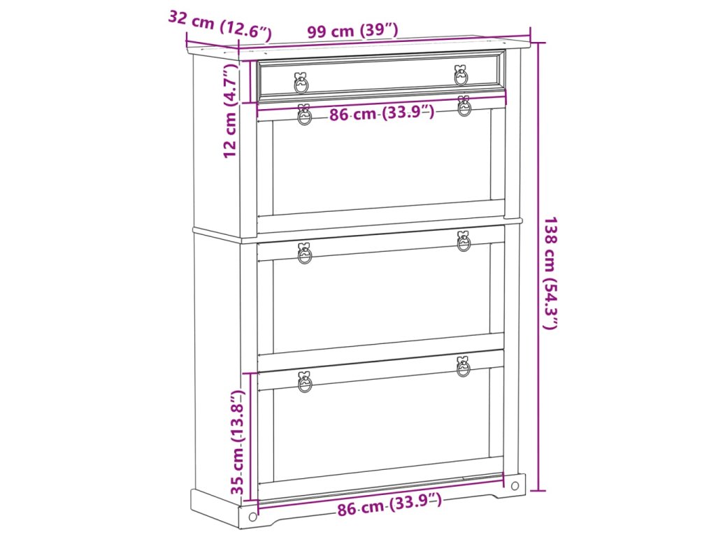 - Rozměry: 99 x 32 x 138 cm (Š x H x V)
